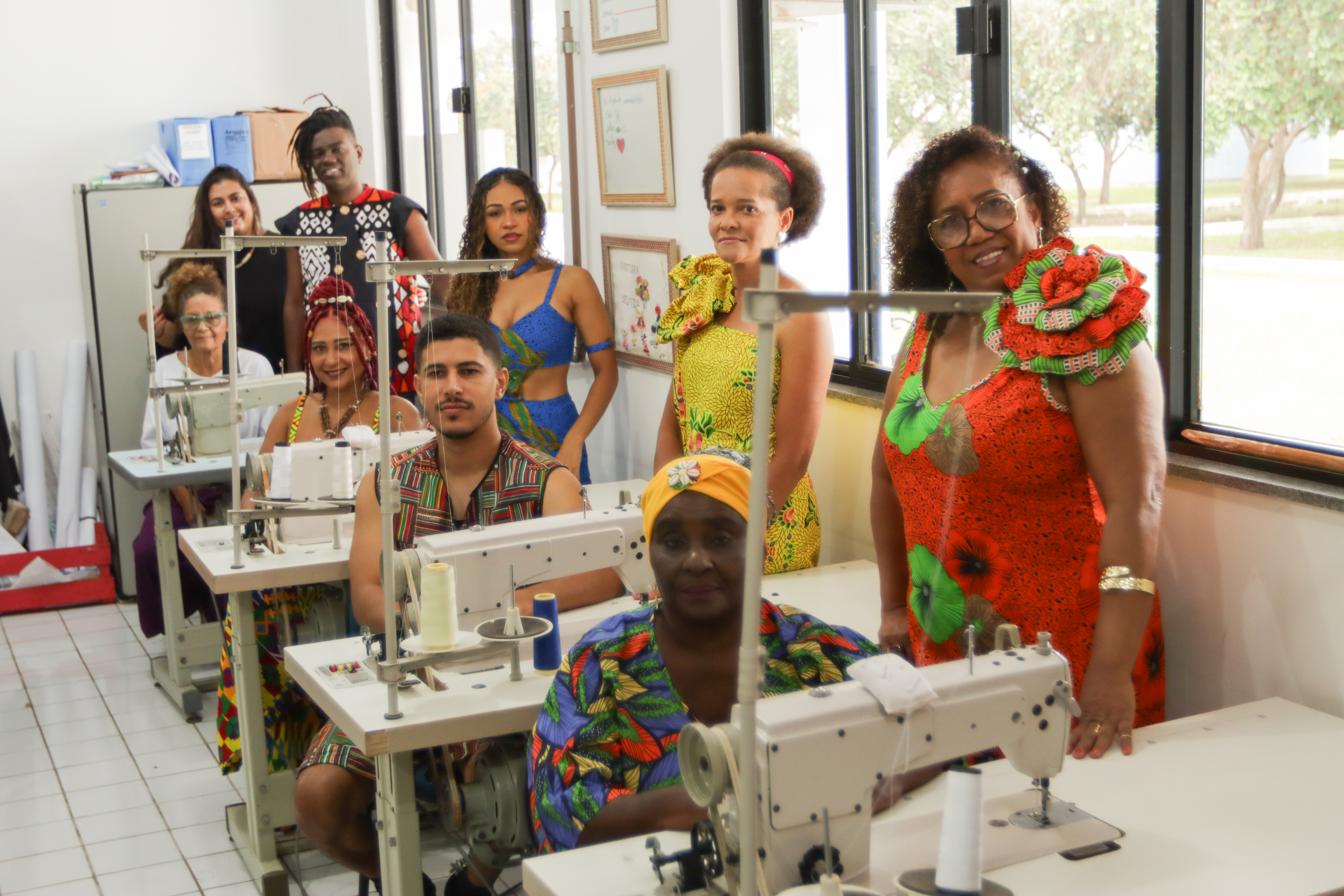 Instrutora da área têxtil, Angelita Carvalho trabalha ensinando desenvolvimento em máquinas industriais há 20 anos. Ela, que ministrou as aulas durante todo o curso de Moda Afro Centrada, afirma que se sentiu realizada ensinando costura para esses jovens negros, agora novos profissionais formados pela UENF: